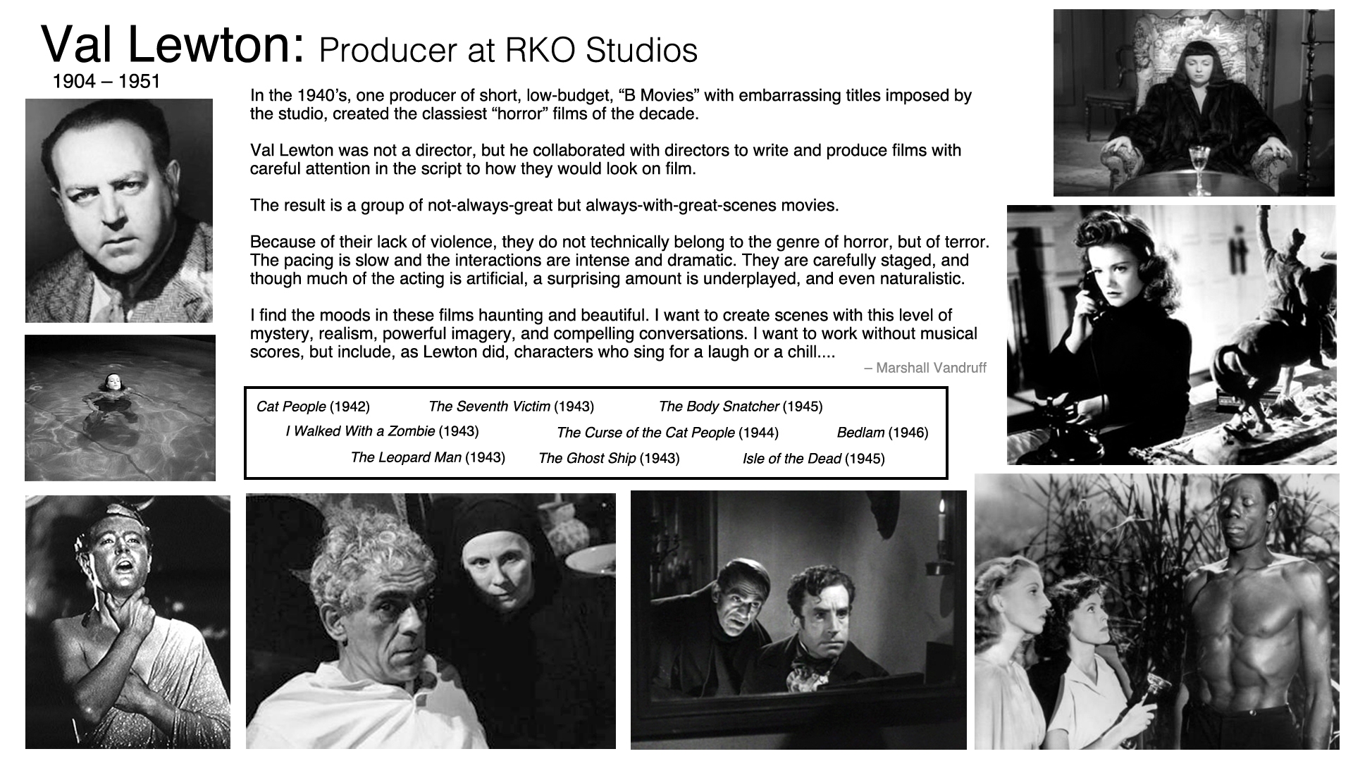 Remember to follow all the criteria in the syllabus for the presentation, but before you sort it out and clean it up, brainstorm and explore on paper to assess your ideas. For example, if you plan to focus on a director, you may instead decide to showcase that director’s influences. If a TV series, an episode or two from that series. Begin roughly before you refine what you present in single slides.